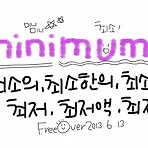 minimum[mínəməm] [형] 최소의, 최소한의 [명] 최소한도, 최저액, 최저량 I wish to save a minimum of ten thousand won. 나는 만원이라도 저축하고 싶다. 1. 최소 Shouldn't all films regardless of their budget be entitled to a minimum screening period? 예산에 상관없이 모든 영화에 최소 상영 기간의 자격이 주어질 수는 없을까? 2. 최저 The absolute maximum recorded temperature is 32.4 °C, while the absolute minimum is -2.5 °C. 최고 기온은 섭씨 32.4도, 최저 기온은 영하 2.5도입니다. 본 손그림 영단어 그..